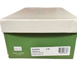 Kate Spade Anguilla Chocolate Rose Print Natural Vacchetta Wedge Heels, 6B, EUC