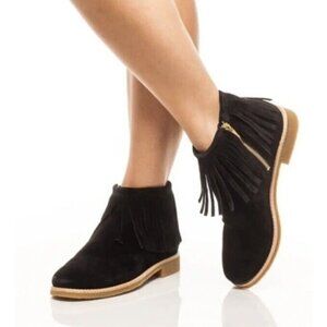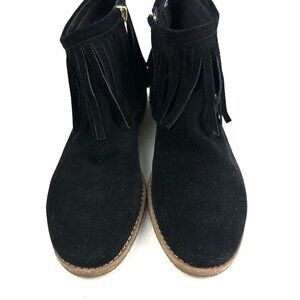 Kate Spade Ankle Boot 8 Betsie Too Suede Fringed Black Booties Womens Zip Up