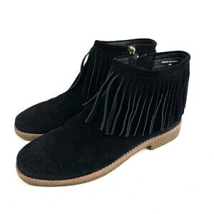 Kate Spade Ankle Boot 8 Betsie Too Suede Fringed Black Booties Womens Zip Up