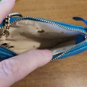 Kate Spade Aqua Gold Coast Coin Purse attached Key fob Quilted Design