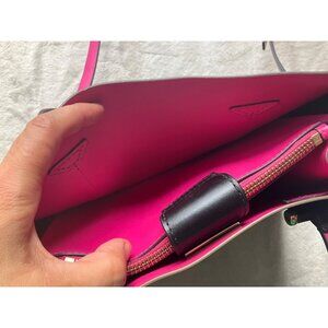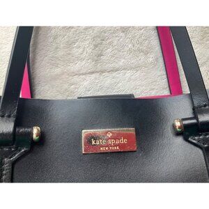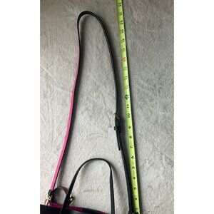 Kate Spade NY Arbour Hill Kyra Crossbody Hand Satchel Bag Black Pink Leather*Read , Gold Hardware Classic Chic, There are 3 Compartments, Front main section having the most interior space, interior Zip pocket and magnetic closure, Double handle satchel with a 5” handle drop, which converts into both a shoulder and a crossbody bag Bottom studs, ***Very good condition just a Light tare and handle came a bit off easy fix See photos 7 and 8******adjustable cross body strap, I bought this bag at Nashville month
