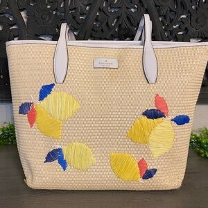 Kate Spade Ash Straw Lemon Zest Large Tote
