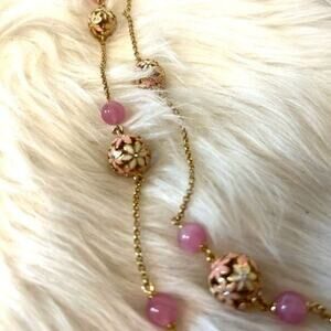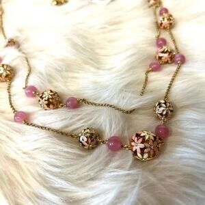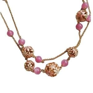 Kate Spade "At First Blush" Double Stranded Floral Necklace Pink/ Gold