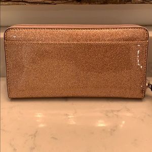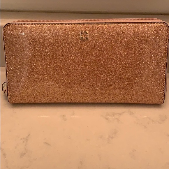 Brand New Kate Spade ♠️ Wallet! NEVER USED Gorgeous rose 🌹 gold sparkle! Can go with any bag 👛. Don’t wait won’t last long! Smoke free home