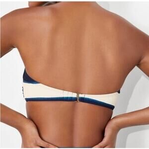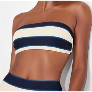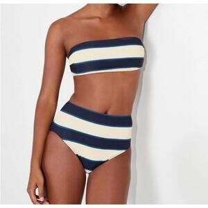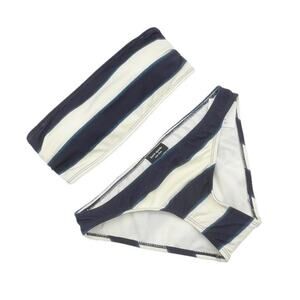 Kate Spade Awning Stripe Bandeau Bikini Swimsuit Blazer Blue Size Large NEW N15