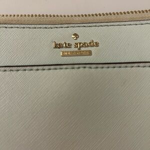 Chic and versatile, this Kate Spade light blue crossbody bag is perfect for any occasion. Its sleek design and elegant color make it a must-have accessory. Perfect condition on the inside. Outside has a few marks scene in photos.