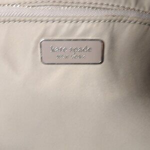 Light Gray/purple is a solid , handle on top and adjustable back pack straps , Zippered pocket on front , main compartment opens by zipper and contains a Zippered pocket within , 100% Nylon , Bag measures roughly 12" X 11" , Good used condition no issues . Pet friendly non smoking home