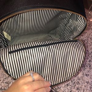 Black, textured leather, gently used back pack. LOVE this bag but having a second kid and need a bigger one!