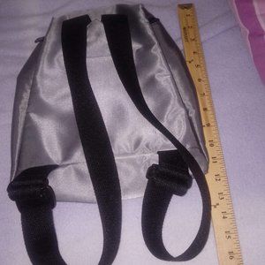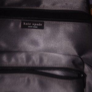Retro Kate Spade fabric backpack. Neutral gray with a silvery sheen that goes with everything and is easy to style. Black web fabric straps. Small to medium size. Top zip opening and front zip pockets. See pics for measurements. Measurements are approximate. Sorry, no trades.
