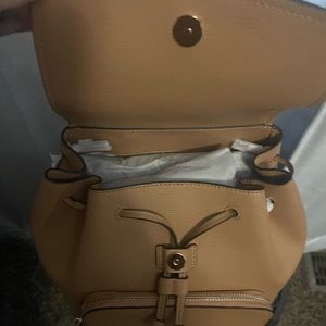 Darcy Flap Backpack, camel leather color. NWT!! Snap closure on flap.