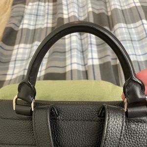 Pebbled leather, EUC only call out is some discoloration at the closure hardware (pictured). Still smells like delicious beautiful leather 😻. Comes with dust bag, tag and care card.