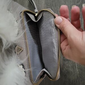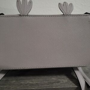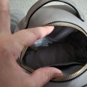 This was barely used. I figured out I'm too old for this, but I love it.I did notice a small mark on the bottom that can be seen in the photos. This bag is still stiff like new. 9 inches wide x 4.5 deep x 10 tall.