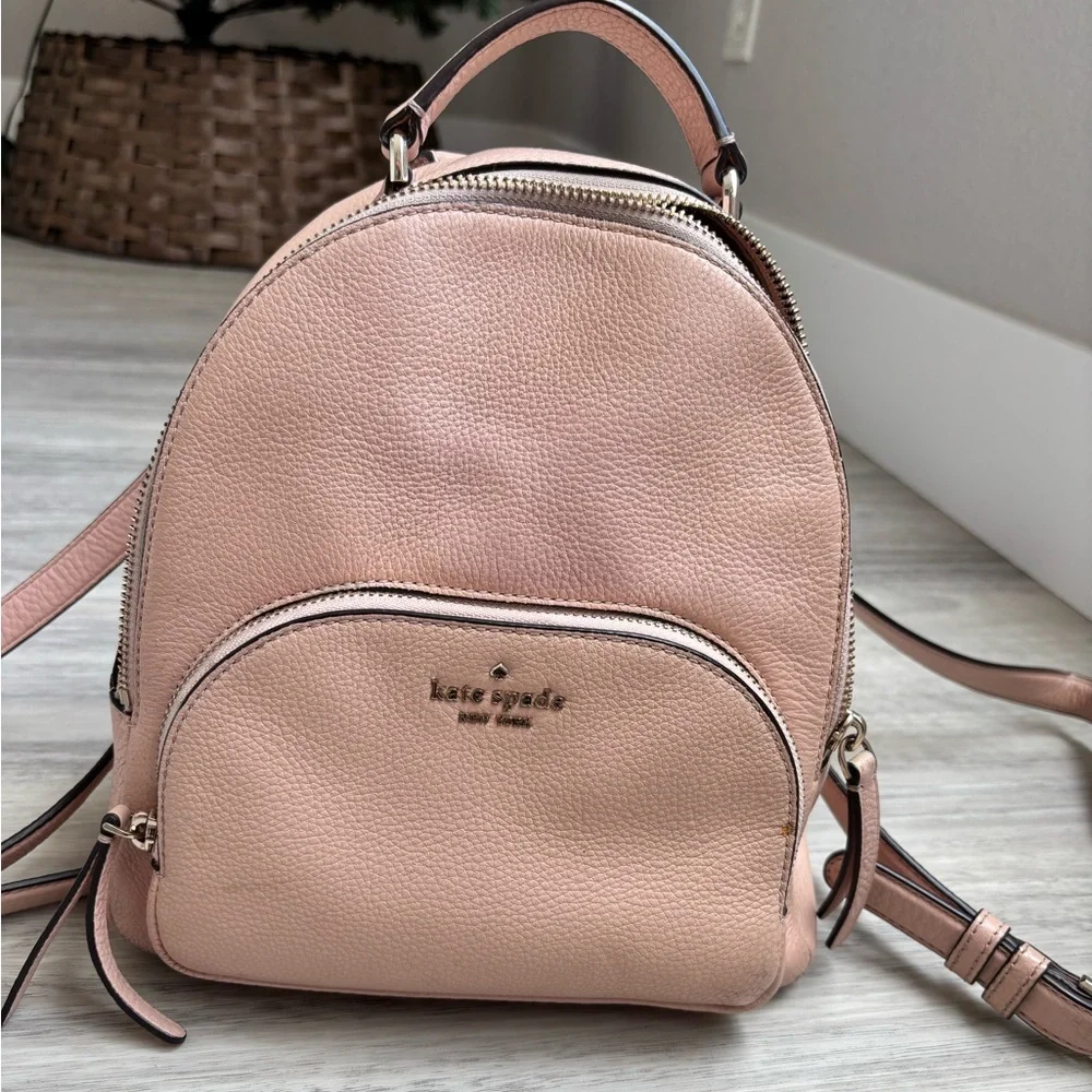 Well loved Kate Spade backpack. Please see listing photos, does have wear and tear and few stains, specifically inside due to pen marks