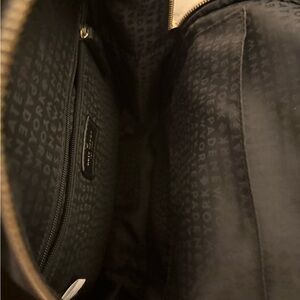 Elegant black interior with a gold zipper. Features Kate Spade branding.
