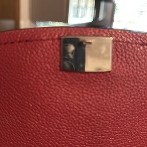 Only defect is the interior buckle has scuffing, but is not noticeable when back is closed and secured.