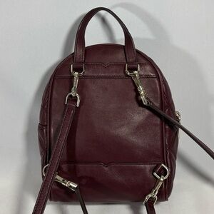 Beautiful mini backpack in good condition. **This is a pre owned bag in good condition. Some light scuffing on corners and edges, see pictures. **Inside the front lining are some makeup stains, see pictures. All measurements are approximate.