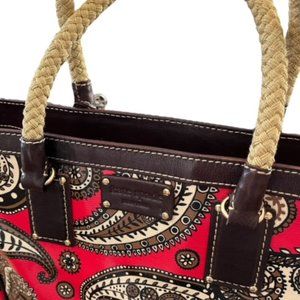 Womens Kate Spade Red Brown Paisley Bag with gold braided handles. Like New . 13" 12.5 " . Red interior. Great Bag ! Its Perfect. # 1034 . Drop is 7.5 my hubby he is a sport ain’t he? lol