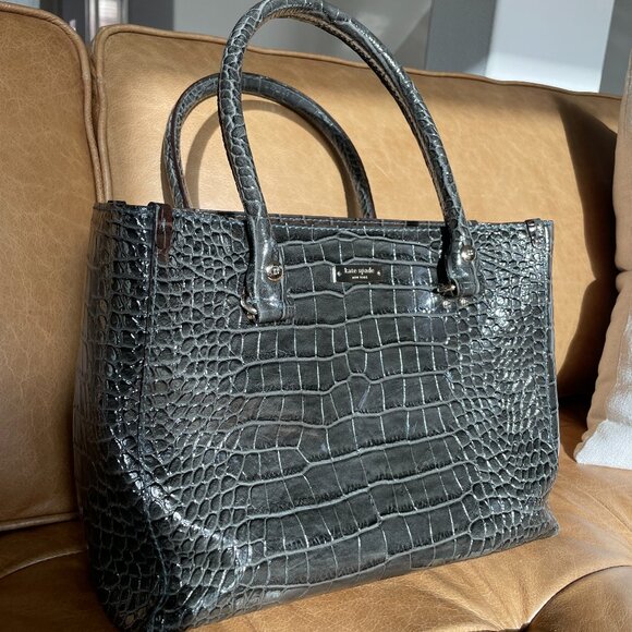green crocodile pattern Kate spade bag