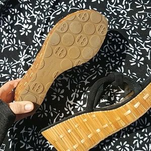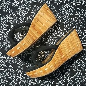 Kate Spade NY Real woven Bamboo & Black knot tie Suede Upper platform Wedge Sandals. Zero tread damage! Only damage is a slight chip in bamboo on outer side of right wedge, see pic #6.