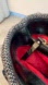 Excellent pre-owned condition! Black and white tweed exterior with red thread on the buttons and red interior; gold hardware. Two straps/handles. Open top. Two large interior zip pockets, two inside open pockets for phone, keys, etc.