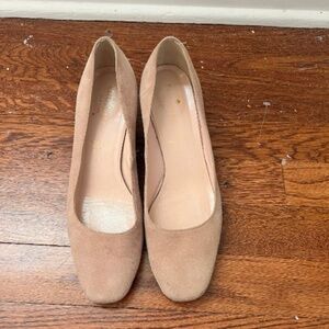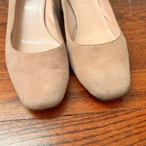 Kate Spade Beige Dolores Too Suede Stacked Gold Heels Size 8