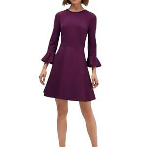 Kate Spade Bell Sleeve Ponte Purple Fit Flare Pockets Dress Size Medium