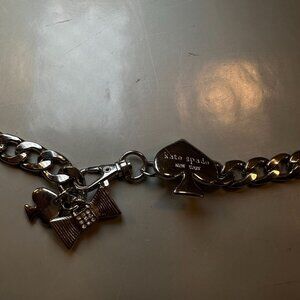 Kate Spade Belt Women New York Silver Tone Chain Statement Spade Bow Charms