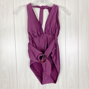 Kate Spade | Belted Plunging Halter One Piece Swimsuit Size Small
