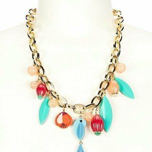 Kate Spade BEST BUDS Gold-Tone Enamel Charm Bird Jade Collar Statement Necklace