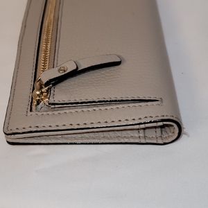 Kate Spade Bifold Wallet in Neutral Beige Pebbled Leather. This is in good pre-owned condition, back zipper is sticky though!