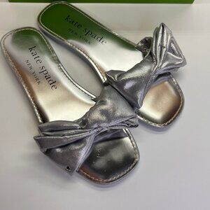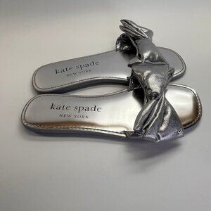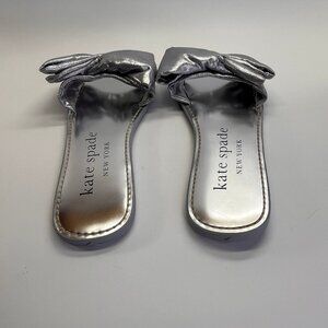 Kate Spade Bikini Silver Flat Sandals Size 9B Neoprene Bow Slip-On Casual