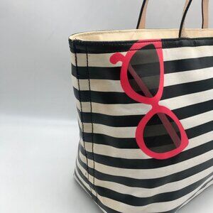 Kate Spade Black And White Leather Splash Out Striped Francis Tote