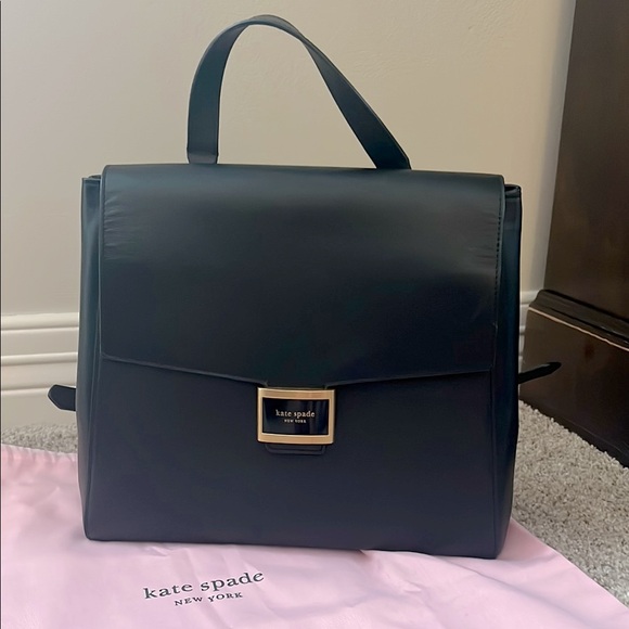 Kate Spade Katy medium flap backpack. Features a sleek design with a top handle and adjustable straps. Magnet snap closure. Like new bag.