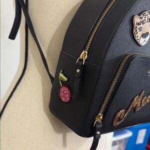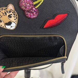 Stylish black backpack. Features playful embroidered patches. Perfect for casual outings. Like new used for one trip.