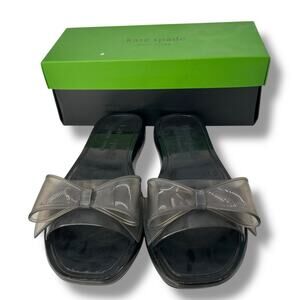 Kate Spade Black Bow Sandals 90's Y2K Jelly Slides Size 9 Black Slip on Flats