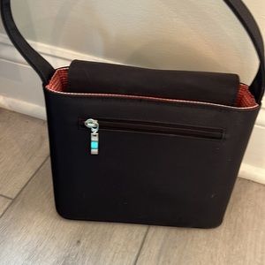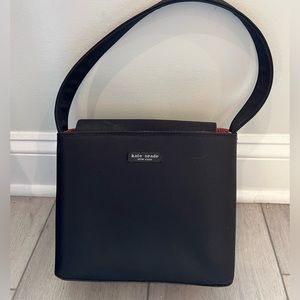 Elegant black shoulder bag with a sleek design and classic look. Perfect for any occasion — from casual outings to evening wear. Vintage Kate Spade style crafted in black canvas with a charming black-and-white gingham interior. Snap closure and interior zippered pocket for secure storage.