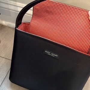 Kate Spade Black Canvas Shoulder Bag Purse – Vintage with Gingham Interior