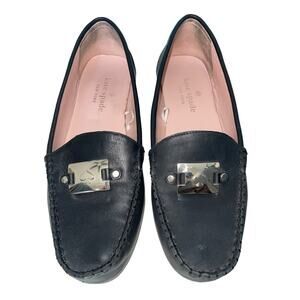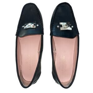 Kate Spade Black Carmen Leather Driving Loafers with Silver Spade Hardware 7B