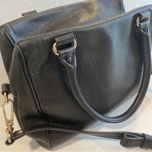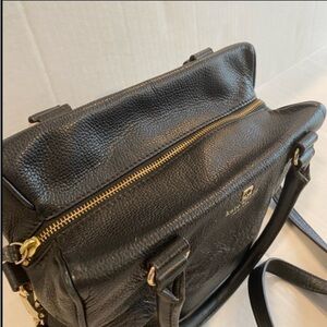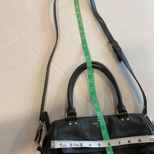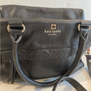 Chic black crossbody bag by Kate Spade. Sleek design with adjustable strap. Perfect for everyday use. Pebbled leather . Adjustable strap long strap. Dual handles. Interior fabric does show signs of use… see pictures for best descriptors!