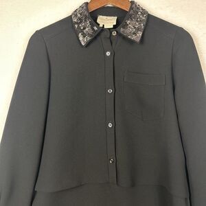 Kate Spade Black Dress Size 4 Sequin Collar Buttons Pockets Formal Classic LBD