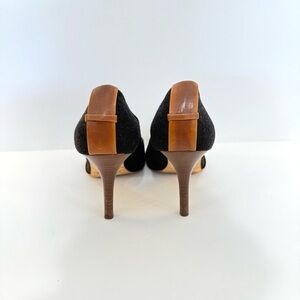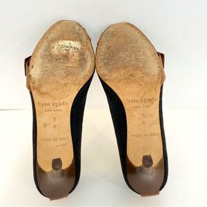Kate Spade Black Felt Fabric Leather Rhinestone Office Open Toe Heels Size 6 B