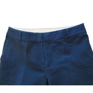 Gorgeous pair of cropped pants in black. Some of the photos may show them as blue but that is just the light. The pant were mine and purchased quite awhile ago but I can no longer fit into them. Flat in the front with 2 slit pockets. The back has 2 pockets as well. Zips closed in the front with a button and 2 metal clasps. At the bottom of each pant leg is a slit of about 1 1/2" with a little bow. The pants are in nice shape and well made in size 2. 98 percent cotton and 2 percent elastane that gives it a bit of a stretch.