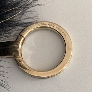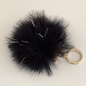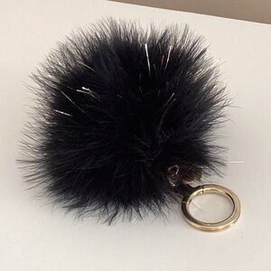 Kate Spade Black Fluffy Feather Pom Keychain Fob Gold Tinsel Sparkle Bag Decor