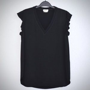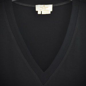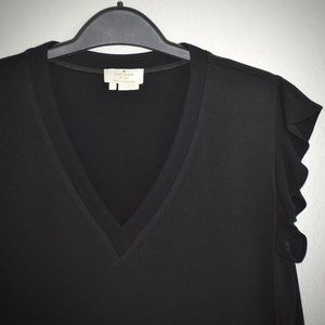 Kate Spade Black Flutter Sleeve Blouse S Satin Crepe VNeck NJMU4836 Relaxed Fit