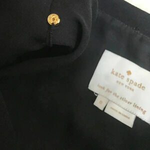 Kate Spade Black Flutter Sleeve V-neck Fluid Frill Crepe Dress Knee Length