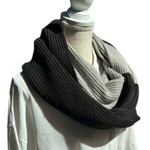 ♠️Kate Spade Black & Gray Color Block Knit Infinity Scarf with Charm