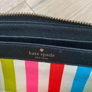 Kate Spade Black Large Continental Zip Around Colorful Striped Interior Wallet