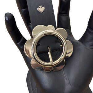 Kate Spade Black Leather Belt With Gold Flower Buckle Womens S