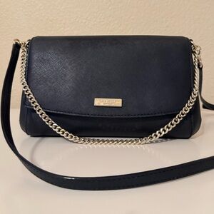 Kate Spade, Black Leather Crossbody Bag, gold toned hardware