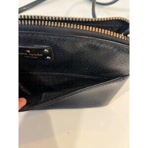 Kate Spade Black Leather Crossbody Purse With Adjustable Strap & Gold Zipper Acc